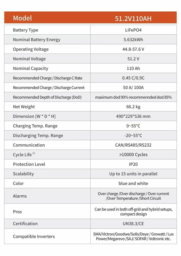 Depth of Discharge (DoD) | Max 90%, Recommend 85% |